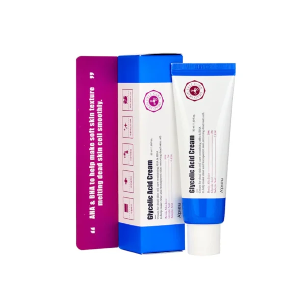 La Glycolic Acid Cream 50 ml de A’pieu es una crema hidratante exfoliante formulada con ácido glicólico, ideal para mejorar la textura, suavizar el tono y mantener la piel equilibrada. Su combinación de 3 % de ácido glicólico con 0,45 % de ácido salicílico acelera la renovación celular, limpia poros en profundidad y promueve una piel más suave y luminosa sin irritarla.