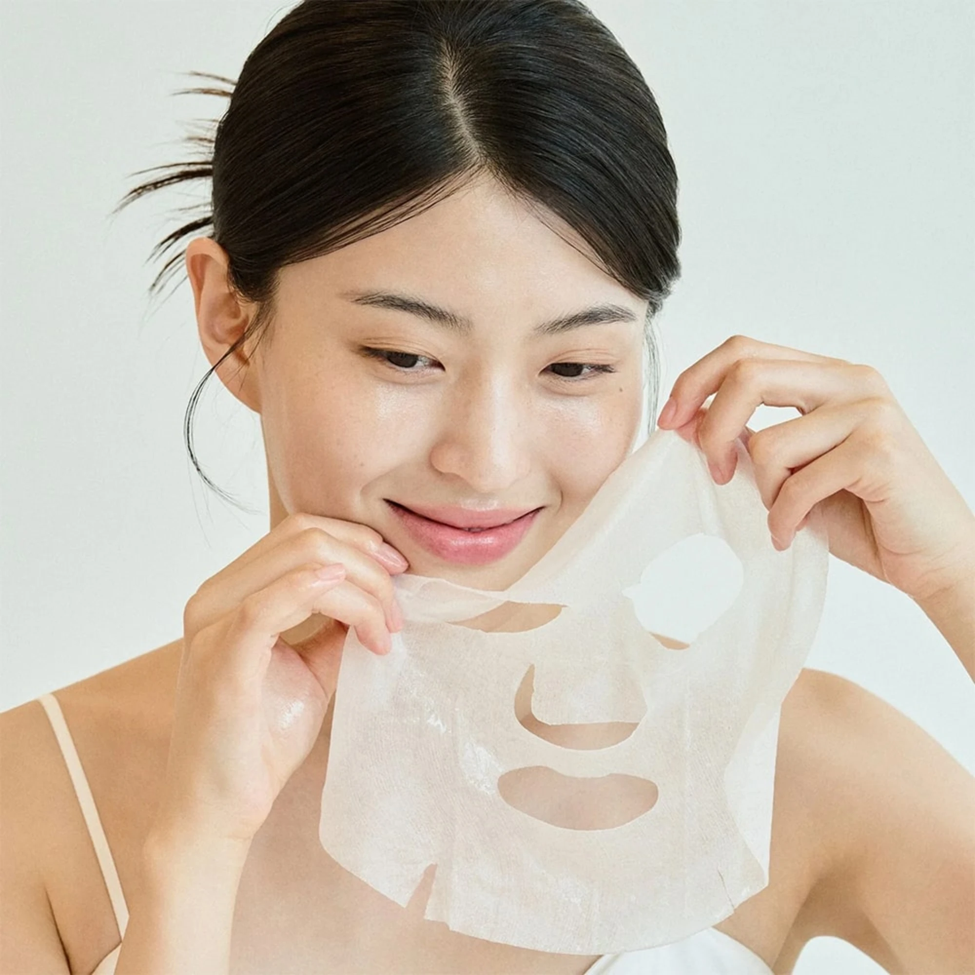 - Mascarilla de tejido que calma y realza la luminosidad de la piel.