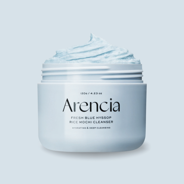 El Arencia Blue Hyssop Rice Mochi Cleanser es un limpiador facial de textura mochi  a base de arroz, diseñado para ofrecer una limpieza potente pero equilibrada. Su fórmula combina arroz, arcilla bentonita, té verde e hisopo azul, ingredientes conocidos por sus propiedades purificantes, calmantes y reguladoras del sebo.