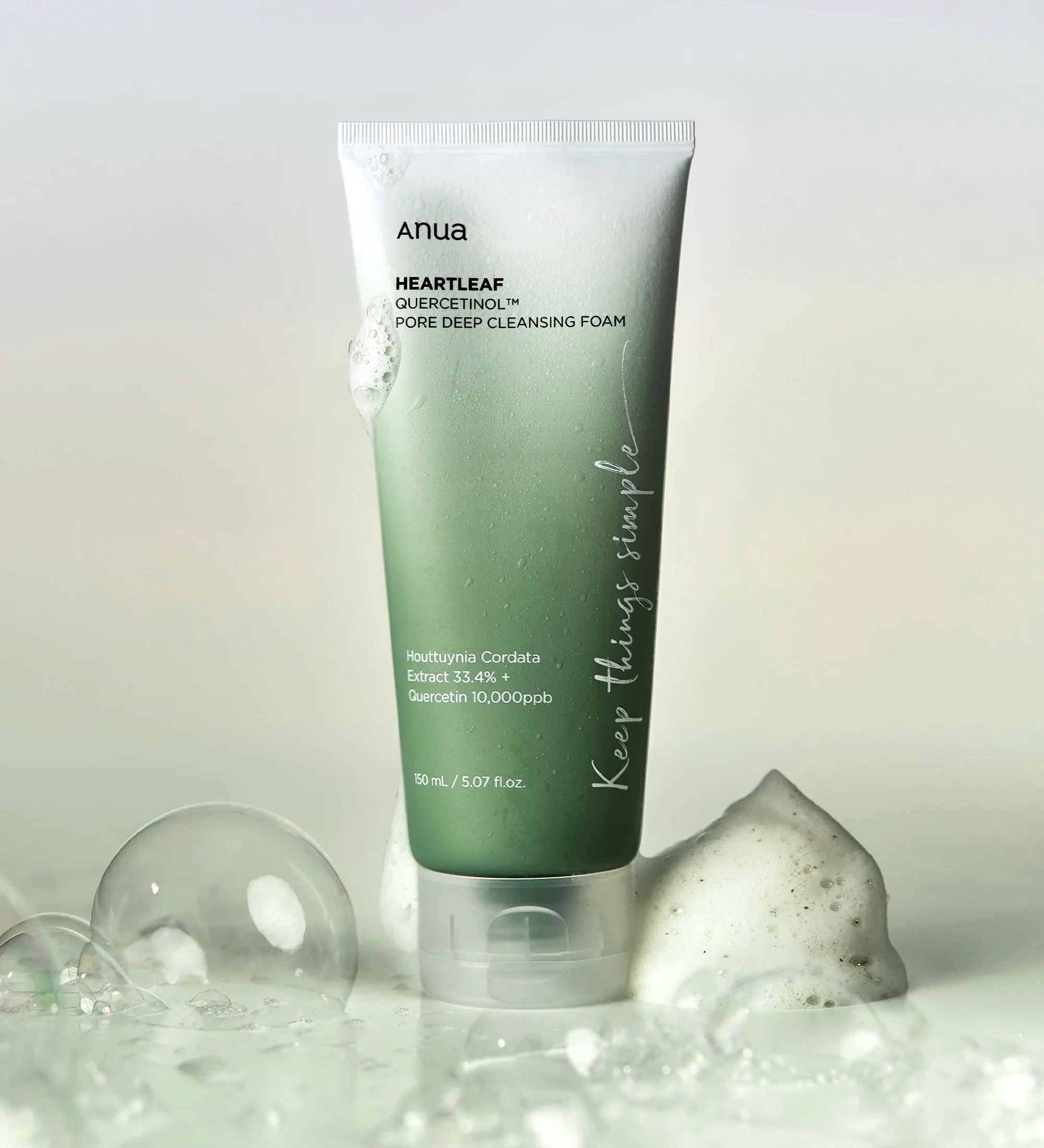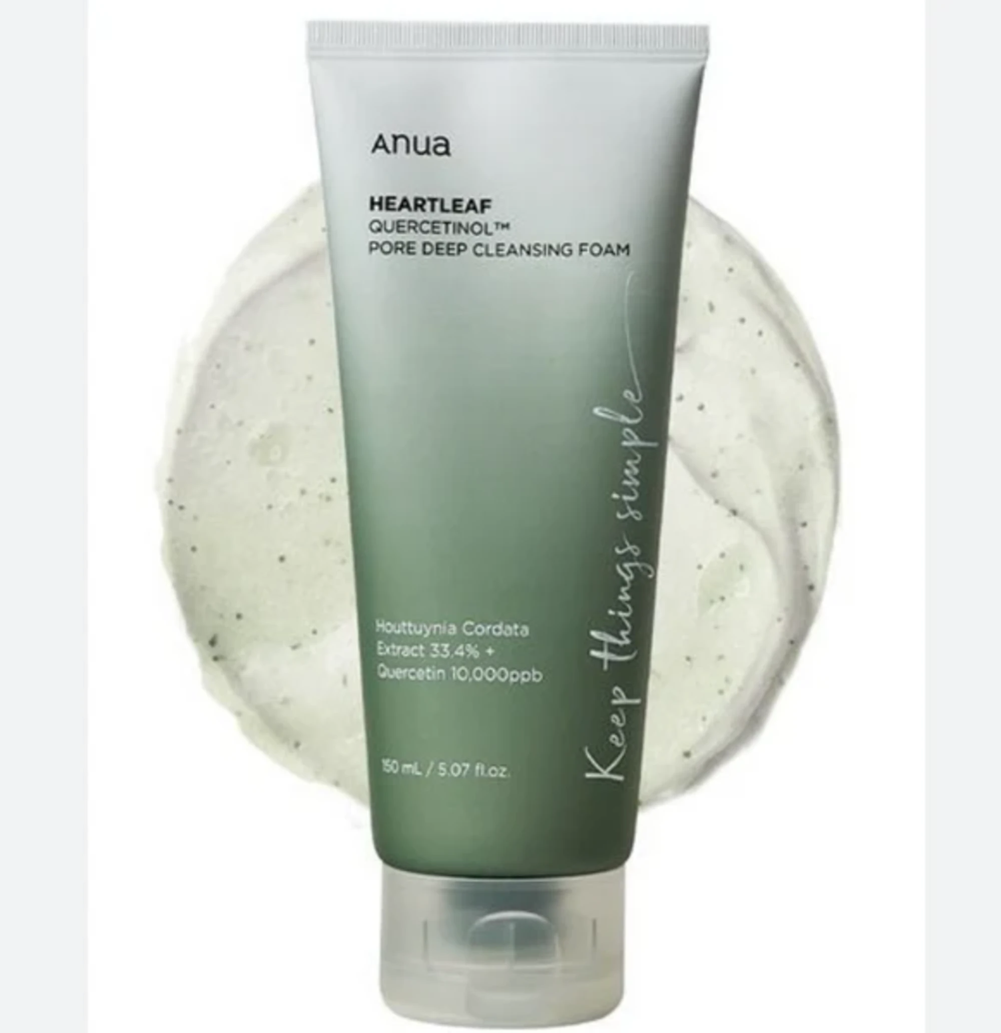 - La espuma limpiadora contiene polvo de Houttuynia Cordata para eliminar la piel muerta y los desechos de los poros. – Contiene extracto de Houttuynia Cordata y quercetina para calmar la irritación causada por la limpieza.