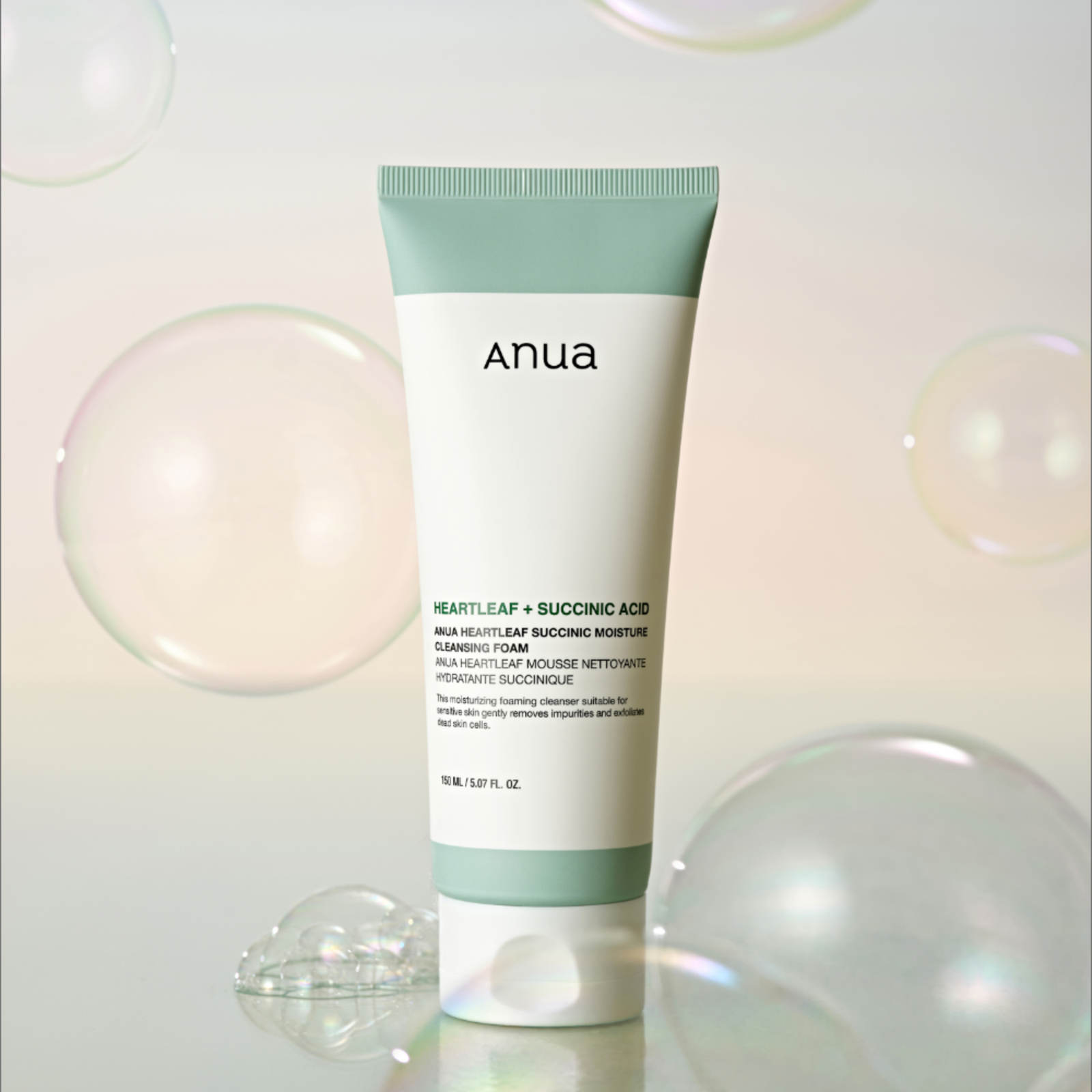 Está formulado con una mezcla equilibrada de ingredientes activos que limpian en profundidad sin causar deshidratación. El extracto de Heartleaf calma la piel irritada y reduce la inflamación, mientras que el succinato actúa como un humectante natural que atrae y retiene la humedad en la epidermis, proporcionando un acabado suave y refrescante.